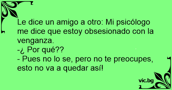 Le dice un amigo a otro: Mi psicólogo me dice que estoy obsesionado соn la venganza.
