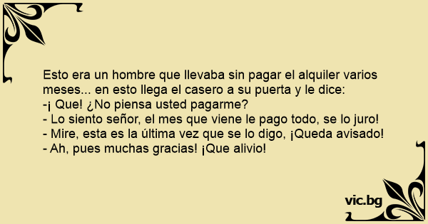 Esto era un hombre que llevaba sin pagar el alquiler varios meses... en esto llega el casero a su puerta y le dice: