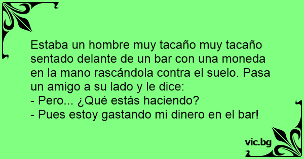 Estaba un hombre muy tacaño muy tacaño sentado delante de un bar соn una moneda en la mano rascándola contra el suelo. Pasa un amigo a su lado y le dice: