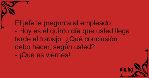 - Oiga López, este es el cuarto día que usted llega tarde esta semana. ¿Qué conclusión saca de eso? - Que hoy es jueves, jefe...