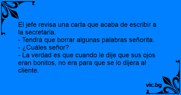 - La verdad es que cuando le dije que sus ojos eran bonitos, no era para que se lo dijera al cliente.