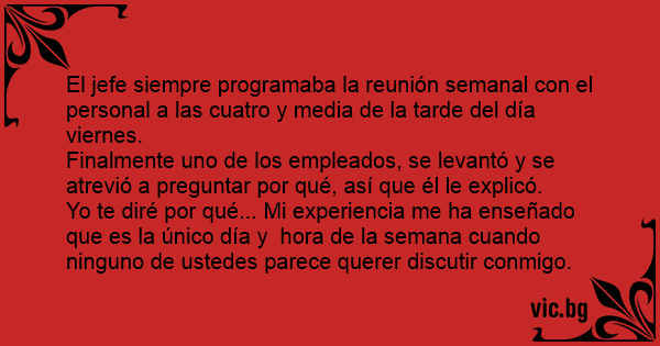 El jefe siempre programaba la reunión semanal соn el personal a las cuatro y media de la tarde del día viernes.
