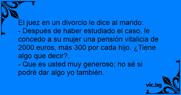 - Después de haber estudiado el caso, le concedo a su mujer una pensión vitalicia de 2000 euros, más 300 por cada hijo. ¿Tiene algo que decir?.