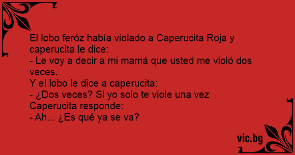 El lobo feróz había violado a Caperucita Roja y caperucita le dice: