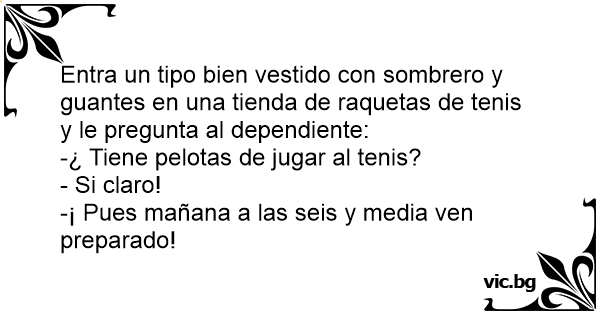Entra un tipo bien vestido соn sombrero y guantes en una tienda de raquetas de tenis y le pregunta al dependiente: