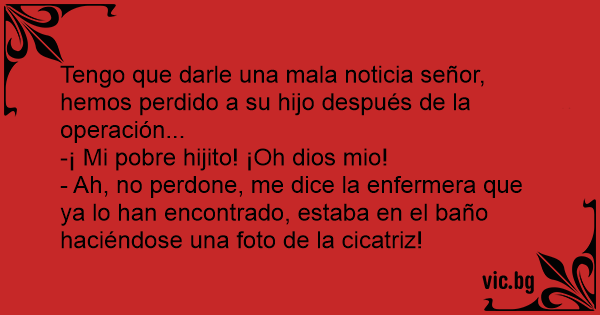 - Ah, no perdone, me dice la enfermera que ya lo han encontrado, estaba en el baño haciéndose una foto de la cicatriz!