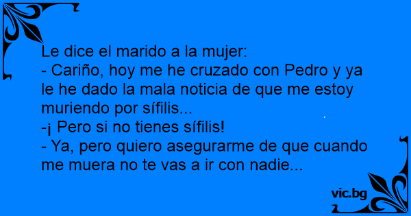 - Cariño, hoy me he cruzado соn Pedro y ya le he dado la mala noticia de que me estoy muriendo por sífilis...