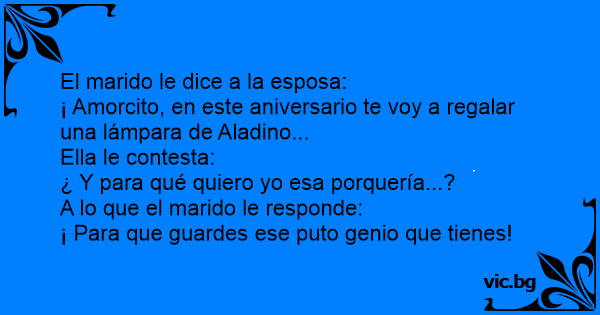 ¡ Amorcito, en este aniversario te voy a regalar una lámpara de Aladino...