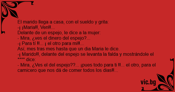-¡ Marido!!, delante del espejo se levanta la falda y mostrándole el **** dice: