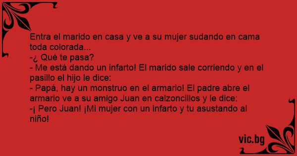 - Papá, hay un monstruo en el armario! El padre abre el armario ve a su amigo Juan en calzoncillos y le dice: