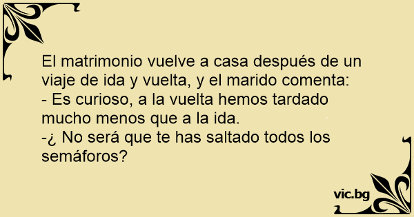 El matrimonio vuelve a casa después de un viaje de ida y vuelta, y el marido comenta: