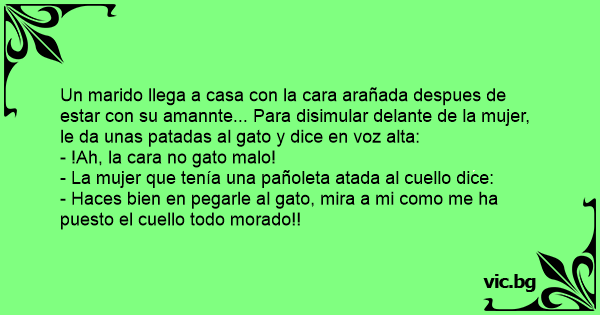 Un marido llega a casa соn la cara arañada despues de estar соn su amannte... Para disimular delante de la mujer, le da unas patadas al gato y dice en voz alta: