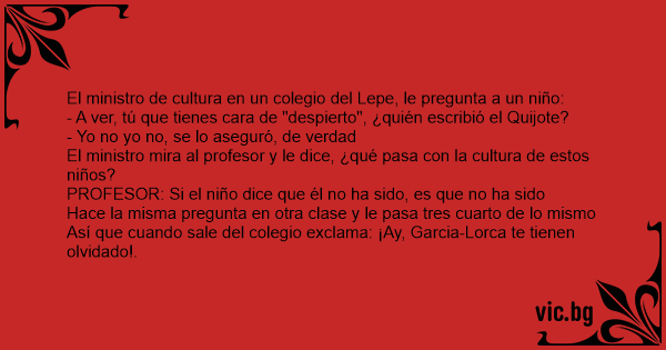 - A ver, tú que tienes cara de "despierto", ¿quién escribió el Quijote?