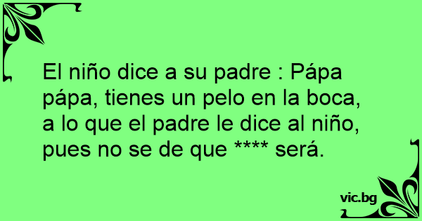 El niño dice a su padre : Pápa pápa, tienes un pelo en la boca, a lo que el padre le dice al niño, pues no se de que **** será.