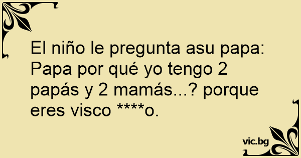 El niño le pregunta asu papa: Papa por qué yo tengo 2 papás y 2 mamás...? porque eres visco ****o.
