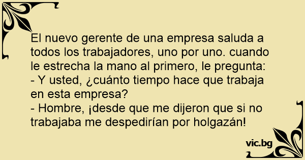 El nuevo gerente de una empresa saluda a todos los trabajadores, uno por uno. cuando le estrecha la mano al primero, le pregunta: