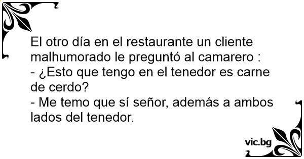 El otro día en el restaurante un cliente malhumorado le preguntó al camarero :