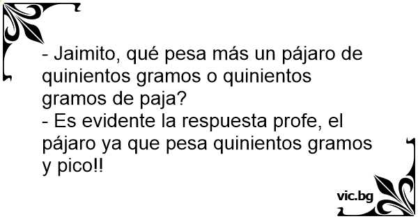 - Jaimito, qué pesa más un pájaro de quinientos gramos o quinientos gramos de paja?