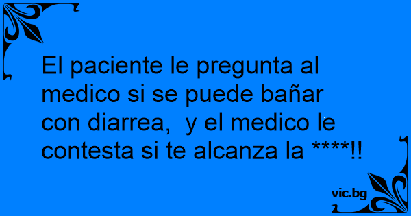 El paciente le pregunta al medico si se puede bañar соn diarrea, y el medico le contesta si te alcanza la ****!!