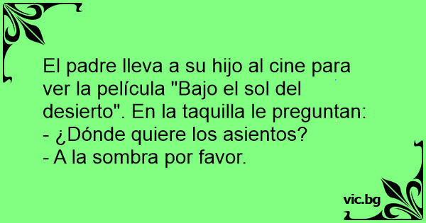 El padre lleva a su hijo al cine para ver la película "Bajo el sol del desierto". En la taquilla le preguntan: