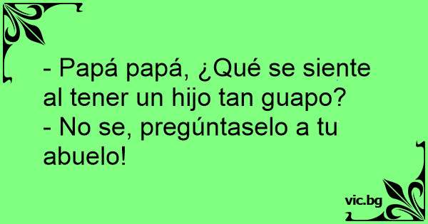 Jaimito le pregunta a su papá: -Papi, ¿cómo se siente tener un hijo tan guapo? -No lo sé hijo, pregúntale a tu abuelo...