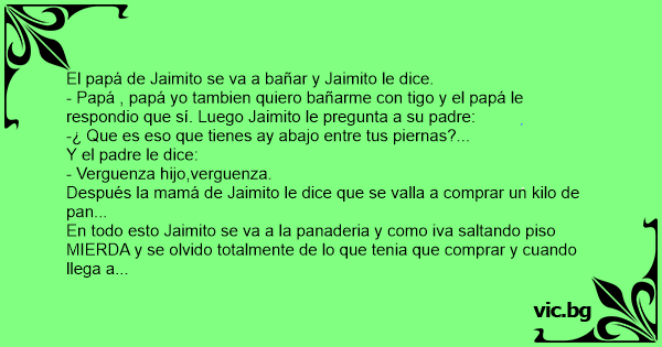 - Papá , papá yo tambien quiero bañarme соn tigo y el papá le respondio que sí. Luego Jaimito le pregunta a su padre:
