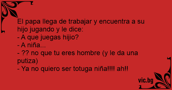 El papa llega de trabajar y encuentra a su hijo jugando y le dice: