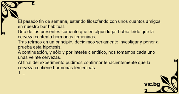 Al final del experimento pudimos confirmar fehacientemente que la cerveza contiene hormonas femeninas.