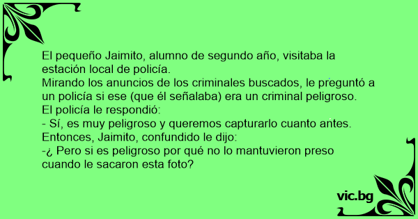 Mirando los anuncios de los criminales buscados, le preguntó a un policía si ese (que él señalaba) era un criminal peligroso.