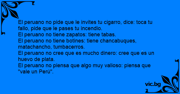 El peruano no pide que le invites tu cigarro, dice: toca tu fallo, pide que le pases tu incendio.