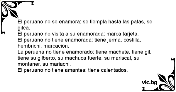 El peruano no tiene enamorada: tiene jerma, costilla, hembrichi, marcación.