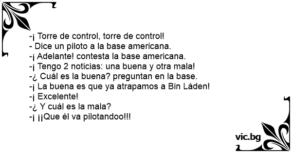 -¡ La buena es que ya atrapamos a Bin Láden!