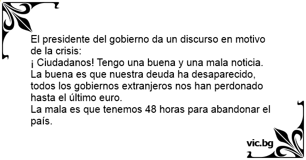 La buena es que nuestra deuda ha desaparecido, todos los gobiernos extranjeros nos han perdonado hasta el último euro.