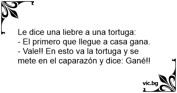 - Vale!! En esto va la tortuga y se mete en el caparazón y dice: Gané!!