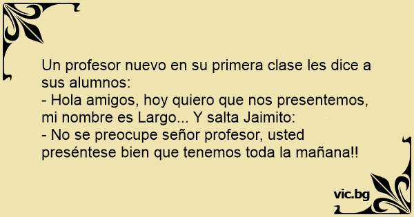 Un profesor nuevo en su primera clase les dice a sus alumnos: