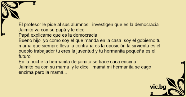 Al día siguiente el profesor le pregunta al jaimito que fue lo que investigaste sobre la democracia?