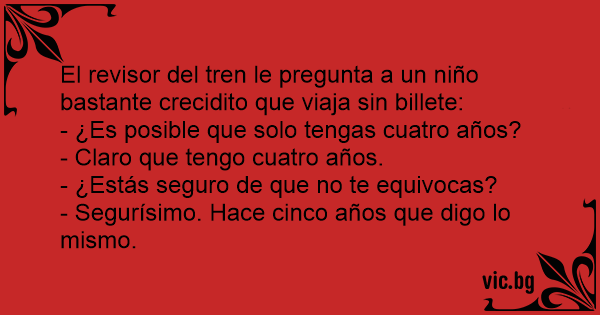 El revisor del tren le pregunta a un niño bastante crecidito que viaja sin billete: