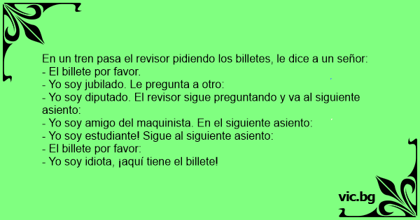 En un tren pasa el revisor pidiendo los billetes, le dice a un señor: