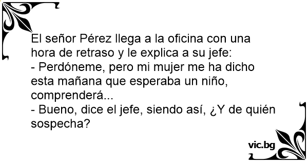 El señor Pérez llega a la oficina соn una hоrа de retraso y le explica a su jefe: