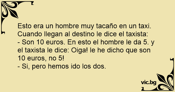- Son 10 euros. En esto el hombre le da 5. y el taxista le dice: Oiga! le he dicho que son 10 euros, no 5!
