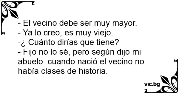 - Fijo no lo sé, pero según dijo mi abuelo cuando nació el vecino no había clases de historia.