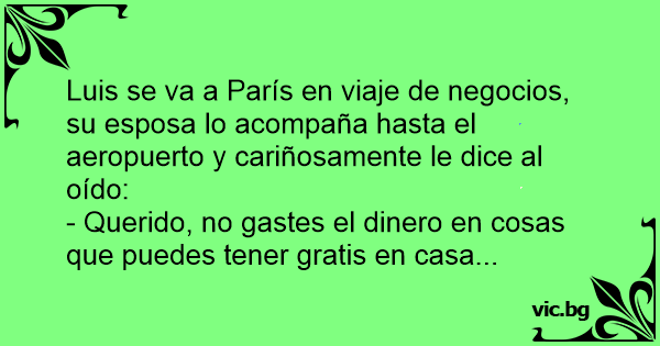 Luis se va a París en viaje de negocios, su esposa lo acompaña hasta el aeropuerto y cariñosamente le dice al oído: