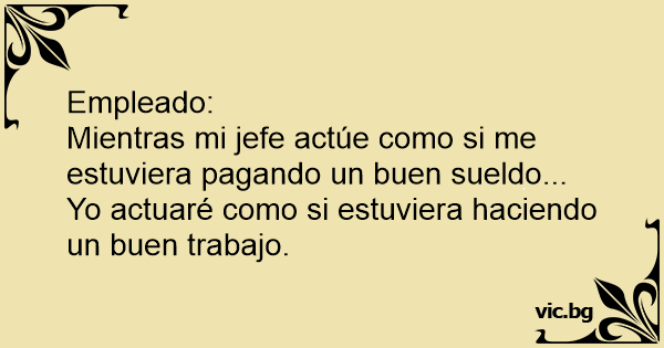 Mientras mi jefe actúe como si me estuviera pagando un buen sueldo...