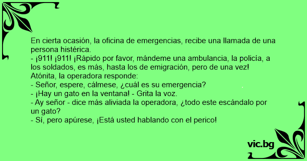 En cierta ocasión, la oficina de emergencias, recibe una llamada de una persona histérica.