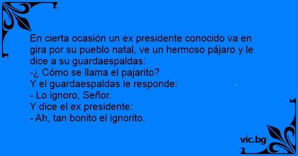 En cierta ocasión un ex presidente conocido va en gira por su pueblo natal, ve un hermoso pájaro y le dice a su guardaespaldas: