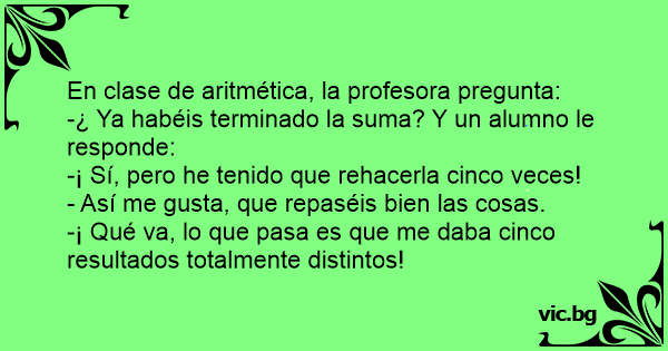-¿ Ya habéis terminado la suma? Y un alumno le responde: