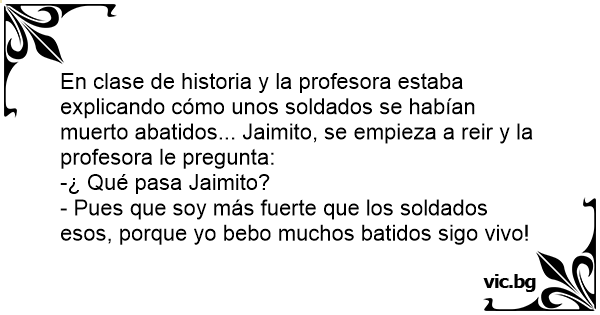 En clase de historia y la profesora estaba explicando cómo unos soldados se habían muerto abatidos... Jaimito, se empieza a reir y la profesora le pregunta: