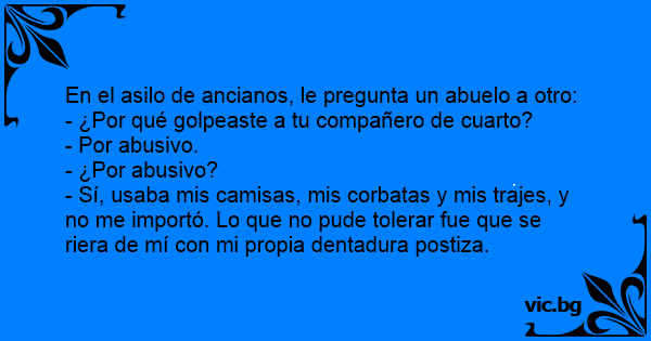 En el asilo de ancianos, le pregunta un abuelo a otro: