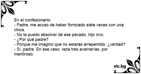 - Padre, me acuso de haber fornicado siete veces соn una chica.
