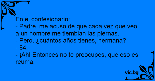 - Padre, me acuso de que cada vez que veo a un hombre me tiemblan las piernas.